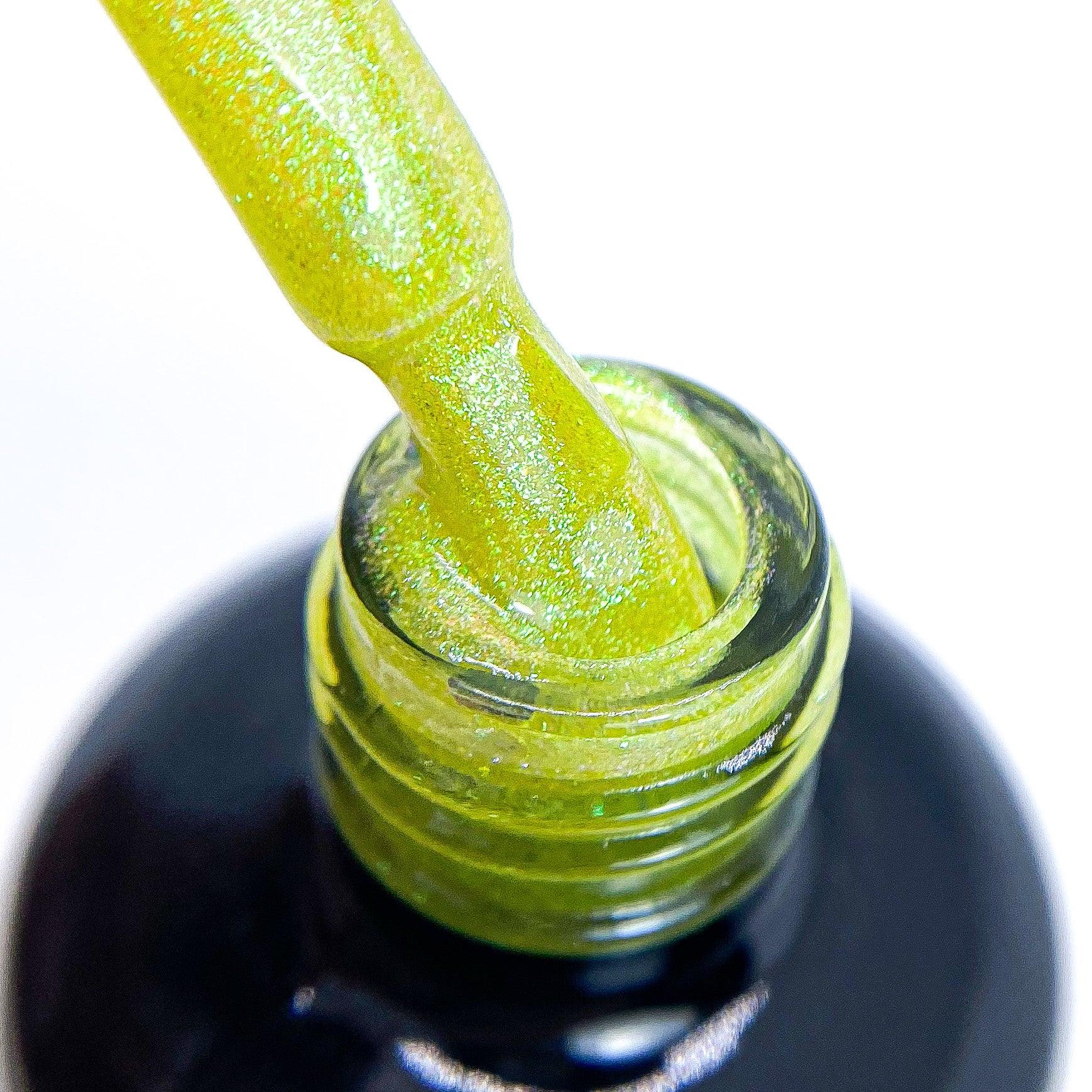 Kleurbeschrijving: Geel met shimmer Uithardingstijd: 60 seconden onder de LED-lamp / 120 seconden onder de UV-lamp Inhoud: 15 ml